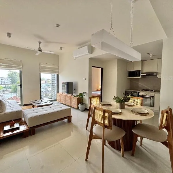 Modern 2BR Resort Apartment with Pool & Gym, Malabe位于Malabe,距离汗钟楼有14公里。客人可以使用桑拿房。这家住宿距离普雷马达萨球场有12公里,配备户外游泳池和免费私人停车位。 这家公寓配备2间卧室、2间浴室、床上用品、毛巾、带有线频道的平板电视、用餐区、设施齐全的厨房以及花园景露台。