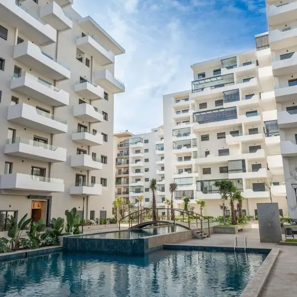 Cosy appartement 2 BR avec vue panoramique piscine se nachází v destinaci Aïn Harrouda a nabízí terasu.