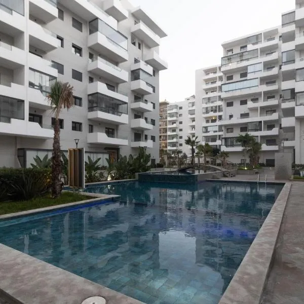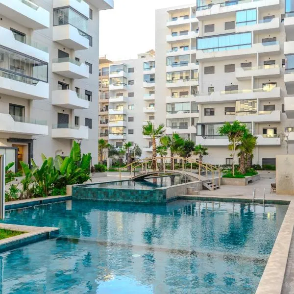 Appartement 2 Chambres à Coté avec Grand Balcon, Piscine, Aire de Jeux pour Enfants et Jardin se nachází v destinaci Casablanca a nabízí venkovní bazén, zahradu, soukromou pláž a ubytování s...