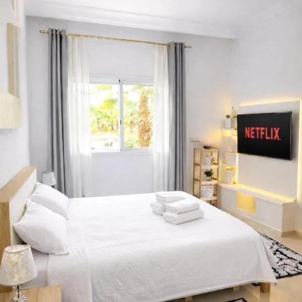 아실라 내에 위치한 Marina golf Asilah에서 머물러보시기 바랍니다. 숙소는 코베스 비치에서 약 2.1km 거리에 있으며, 정원 전망, 야외 수영장, 전용 해변 구역, 테라스 등을 제공합니다. 이 아파트에서는 취사가 가능하며, 전용 수영장, 정원, 바비큐 시설, 무료 Wi-Fi, 무료 전용 주차장 등을 이용하실 수 있습니다.