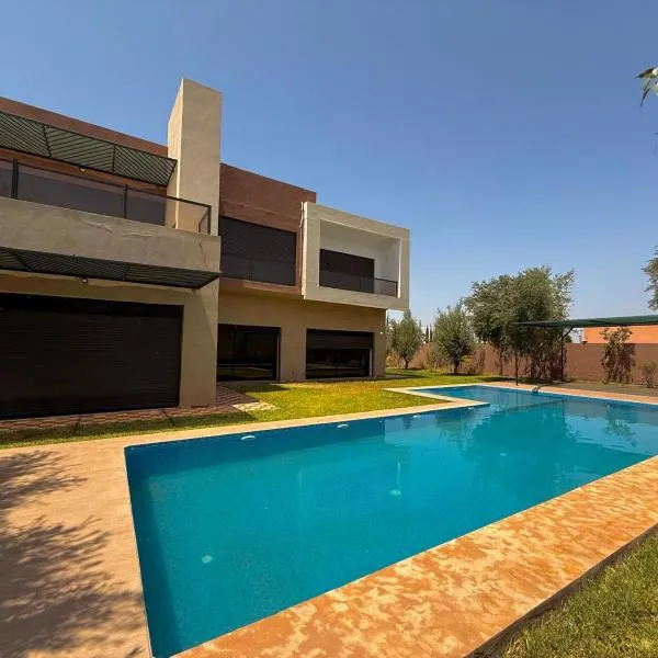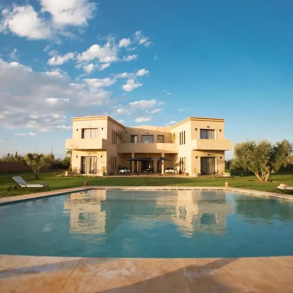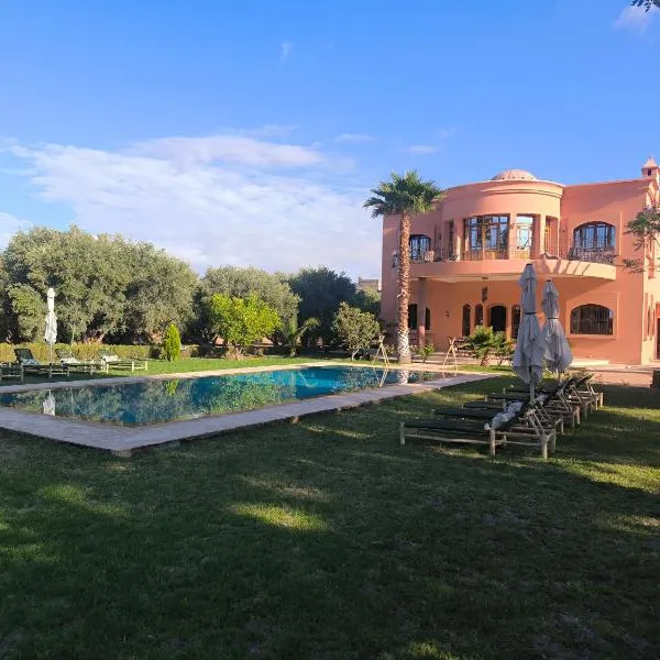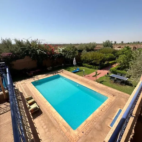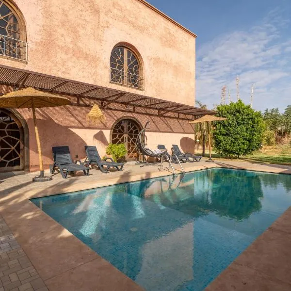 Villa Agora, Villa à la campagne proche Marrakech坐落于马拉喀什,距离巴伊亚宫有20公里,配备户外游泳池、免费私人停车位、花园和共用休息室。这家住宿拥有露台、按摩服务和烧烤设施。住宿提供机场交通服务和自行车租赁服务。 这家旅馆的所有客房都提供衣柜、床上用品和花园景庭院。