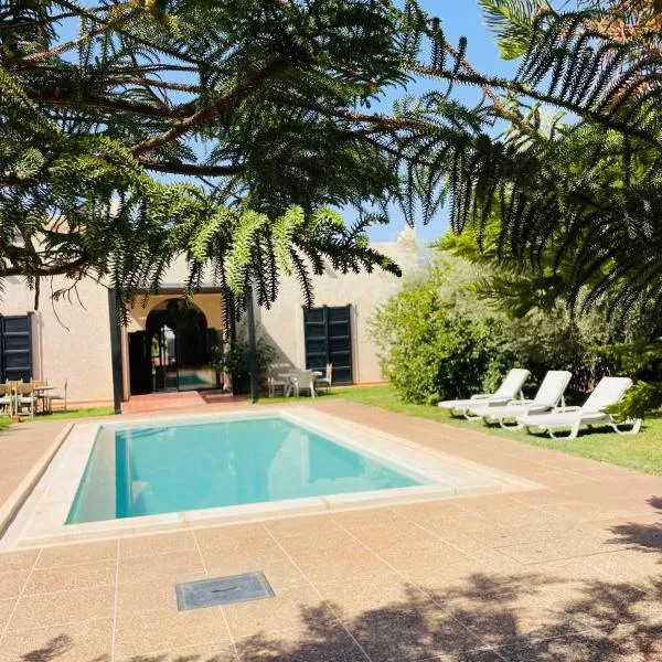 villa Bohème Chic坐落于Had Abdallah Rhiat,提供私人泳池和免费WiFi。这家住宿距离巴伊亚宫有19公里,配备露台和免费私人停车位。 这家空调别墅配有2间独立卧室、起居室、设施齐全的厨房以及3间浴室。这家别墅也配有3间浴室。 这家别墅距离地毯博物馆有19公里,距离马拉喀什东方博物馆有20公里。马拉喀什梅内拉机场距离住宿有24公里。