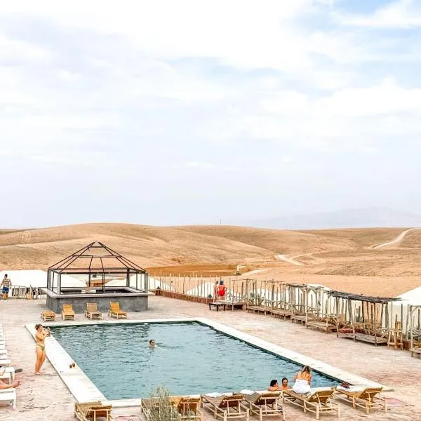 Stellar Agafay Desert Camp位于Aït Daoud,距离梅纳拉花园有43公里,提供户外游泳池、免费私人停车位、花园和露台。这家尊贵型酒店配备餐厅,提供带免费WiFi和私人浴室的空调客房。客人可以使用酒吧。 这家酒店的每间客房都提供书桌。Stellar Agafay Desert Camp的部分客房享有山景。客房配有咖啡机。这家住宿的每间客房都配备床上用品和毛巾。...