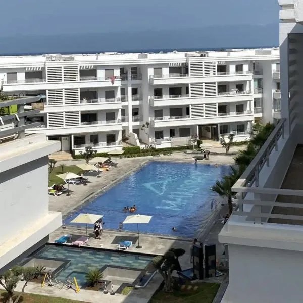 Appartement de luxe en bord de mer avec piscine erbjuder en balkong med utsikt över havet, en utomhuspool och en trädgård, och ligger i Mansouria i närheten av Plage Les Palmiers och 39 km från Hassan...