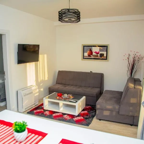 Apartman DBB Nikšić坐落于Nikšić County的尼克希奇,拥有阳台。这家公寓提供露台和免费WiFi。 这家空调公寓配有1间卧室、起居室、带冰箱和电热水壶的设施齐全的厨房以及1间带浴缸和免费洗浴用品的浴室。这家公寓还配备平板电视以及1间带吹风机的浴室。 波德戈里察国际机场距离住宿有61公里。