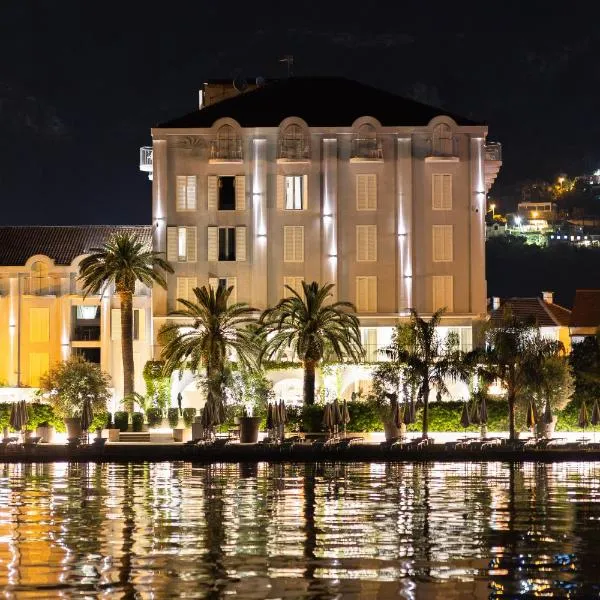 Boutique Hotel Porto Palace ligger i Tivat, 3 minuters promenad från Plaža Ponta Seljanova, och erbjuder boende med en utomhuspool, gratis privat parkering, ett fitnesscenter och en restaurang.