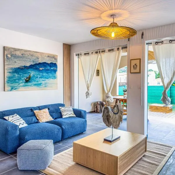 Objekat Appartement avec piscine, koji je smešten u gradu Le Troa Ile, u ponudi ima klimatizovani smeštaj sa sopstvenim bazenom, pogledom na bazen i balkonom.