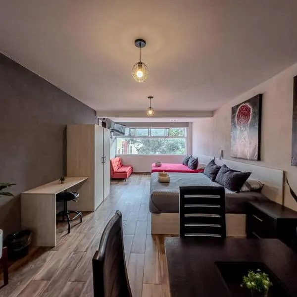 Departamentos 1 min Plaza las Américas位于莫雷利亚,距离瓜达卢佩圣所有3公里,距离莫雷利亚会议中心有3.6公里。住宿配备免费WiFi,内部提供私人停车位。 每间房间都配有带微波炉的设施齐全的厨房、带沙发床休息区、平板电视以及带浴缸和免费洗浴用品的私人浴室。 这家公寓距离纳塔尔莫来罗斯博物馆有5.1公里,距离莫雷洛斯体育场有10公里。