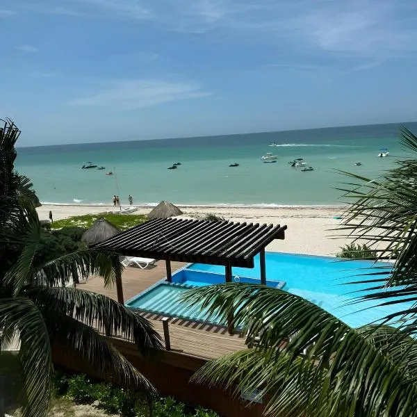 Nuxká Hotel Boutique ligt in Telchac Puerto, op 200 meter van het strand van Telchac Puerto, en biedt accommodatie met een buitenzwembad, gratis privéparkeergelegenheid en een terras.