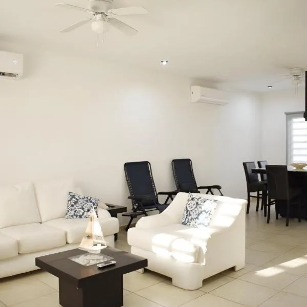 Excellent Location North of the city Guaymas Sonora位于索诺拉州的瓜伊马斯,拥有庭院。这家度假屋提供免费私人停车位、24小时前台和免费WiFi。 这家度假屋配有2间卧室、电视、带冰箱和烤箱的设施齐全的小厨房、洗衣机以及1间带淋浴设施的浴室。这家度假屋也提供1间带浴缸的浴室。 客人可以在附近体验骑行。