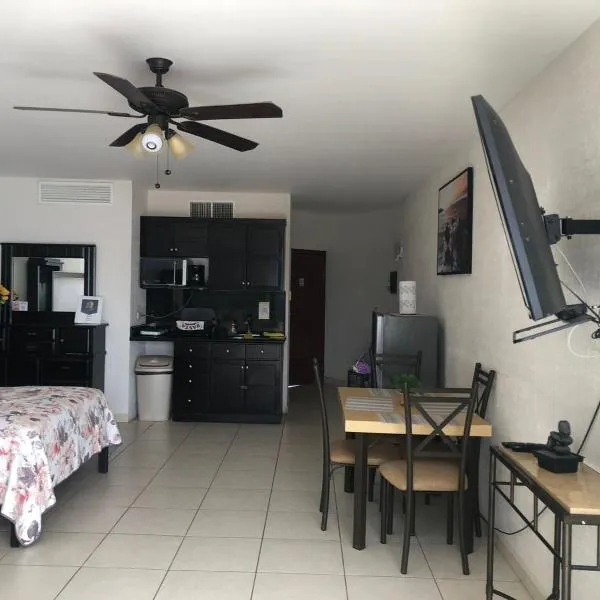 Suites Del Sol坐落于索诺拉州的瓜伊马斯,距离巴克奇班波海滩(Bacochibampo Beach)有2.9公里。这家豪华型酒店配备餐厅,提供带免费WiFi和私人浴室的空调客房。内部提供私人停车位。 这家酒店的客房配备衣柜。部分客房还配有带冰箱、微波炉和炉灶的小厨房。Suites Del Sol的房间配备电视和免费洗浴用品。