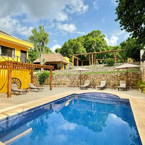 Cabañas HUNAB KU 21位于Hocabá,享有池景,配备户外游泳池、花园、露台和酒吧。住宿配备的免费WiFi,内部提供私人停车位。 所有房间均提供带淋浴设施、免费洗浴用品和吹风机的私人浴室。 这家住宿加早餐旅馆距离Kukulcan Stadium有49公里,距离La Mejorada Park有50公里。住宿距离梅里达国际机场有53公里,提供付费机场接驳服务。