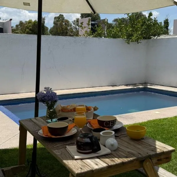 Casquito de Hacienda坐落于埃塞基耶尔-蒙特斯,距离伯纳尔巨石仅有23公里,享有花园景,配备免费WiFi和免费私人停车位。 这家度假屋拥有阳台、1间卧室、3间浴室、设施齐全的厨房、平板电视和热水浴池。这家度假屋也配有3间浴室。 Quétaro Intercontinental Airport机场距离住宿有39公里。