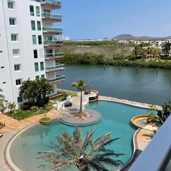 Departamento frente al mar en zona cerritos提供免费WiFi和户外游泳池,距离塞里托斯/布鲁哈斯海滩(Cerritos/Brujas Beach)有不到几步路,距离玛卡多小广场有不到17公里。 这家公寓也提供2间浴室。 这家公寓距离马萨特兰灯塔有20公里。拉斐尔·博伊纳将军机场距离住宿有38公里。