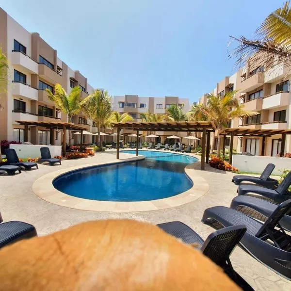 Apartment for 4 with wave pool位于La Florida的Cerritos,靠近塞里托斯/布鲁哈斯海滩(Cerritos/Brujas Beach),拥有健身中心、免费WiFi和洗衣机。这家公寓距离玛卡多小广场有16公里,距离马萨特兰灯塔有19公里。 这家空调公寓配有1间独立卧室、起居室、带冰箱和炉灶的设施齐全的厨房以及1间浴室。这家公寓也配备1间浴室。