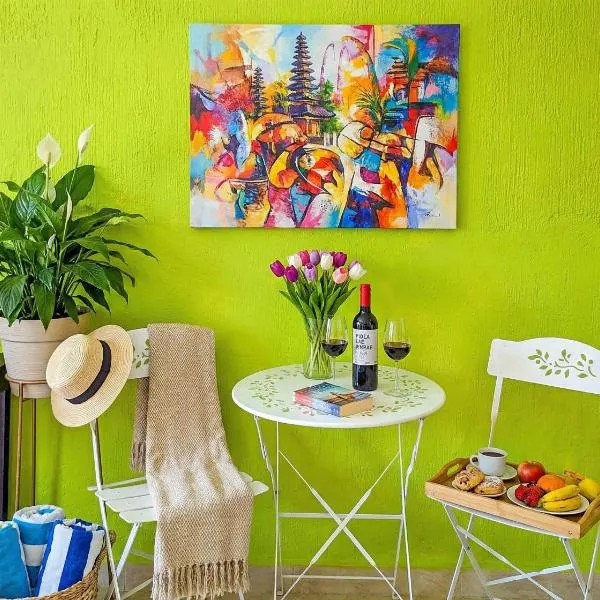 Casa de Colores encontra-se a 2,3 km de Playa del Carmen e dispõe de um jardim, um salão partilhado e acomodações com ar condicionado, varanda e acesso Wi-Fi gratuito.