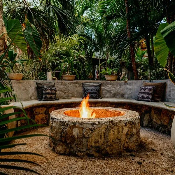 Die Unterkunft Glamping Mama Loo mm mit Gartenblick in Puerto Morelos bietet Übernachtungsmöglichkeiten mit einem Außenpool, einem Garten, einer Terrasse und Grillmöglichkeiten.