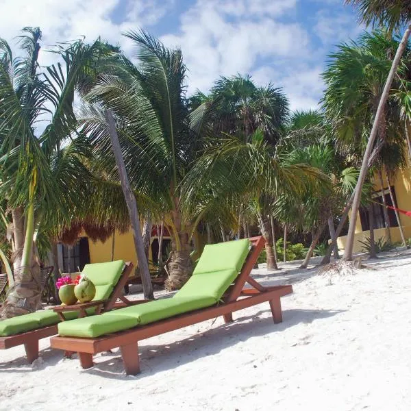 Quinto Sole Boutique Hotel Mahahual位于玛哈威,面向海滨,提供豪华型住宿,配有私家海滩、露台和餐厅。这家住宿提供酒吧,距离马哈花尔海滩(Mahahual Beach)有不到7分钟步行路程。住宿提供免费WiFi和旅游咨询台。 这家酒店的所有客房都配备书桌。
