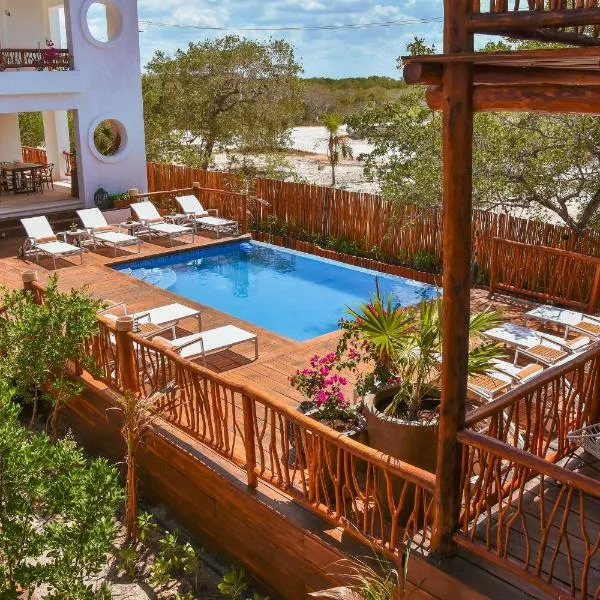 Located in Holbox Island, Casa Hood By the Sea features an outdoor swimming pool, garden, terrace, and free WiFi throughout the property.