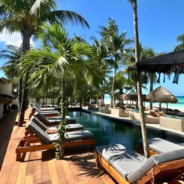 DK Luxury Ocean Front Villa - Adults Only坐落于奥尔沃克斯岛,提供海滨住宿,距离洪伯克斯海滩(Playa Holbox)有几步路,配备户外游泳池、花园和露台等设施。酒店也提供免费WiFi和付费机场接驳服务。 这家酒店的所有客房都提供空调、衣柜、海景阳台、私人浴室、平板电视、床上用品和毛巾。 DK Luxury Ocean Front Villa -...