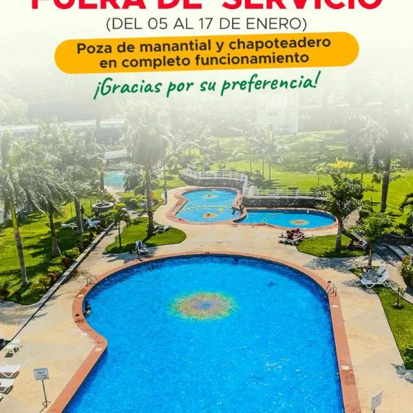 Riverside Hotel Chachalacas坐落于查察拉卡斯,距离圣胡安德乌拉城堡有45公里,配备户外游泳池、免费私人停车位、花园和餐厅。这家住宿提供的设施包括客房服务、24小时前台以及免费WiFi。客人可以使用热水浴池,或欣赏河景。 这家酒店的客房提供衣柜。Riverside Hotel Chachalacas的房间均提供平板电视、空调以及配备淋浴设施和免费洗浴用品的私人浴室。