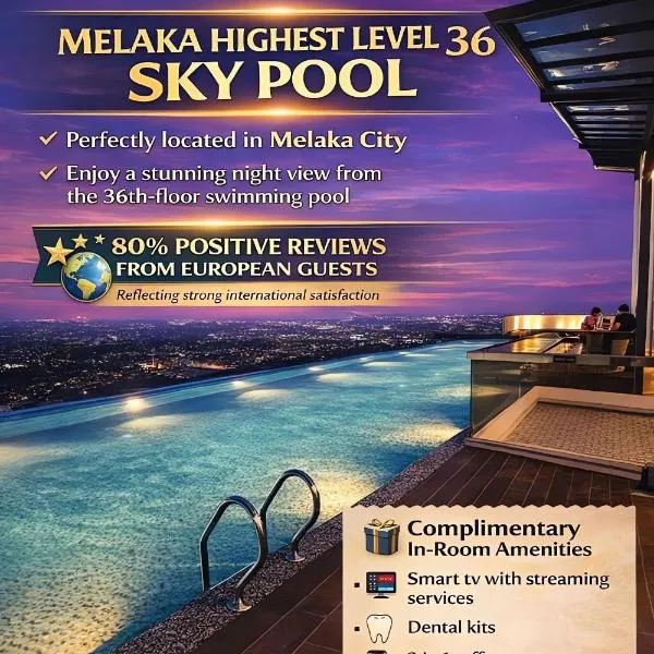 Set in Melaka, 700 metres from Menara Taming Sari, Hatten Hotel Super Sea View 4pax High Floor FREE 1 Carpark & Netflix with 2 TV Room offers accommodation with an outdoor swimming pool, free private...
