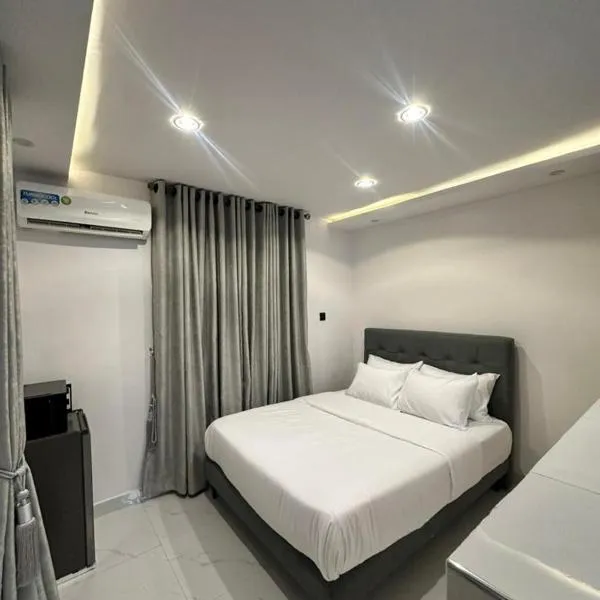 Blue AO service apartment 位於拉各斯,距離國家藝術劇院 7.2 公里,距離拉哥斯中央清真寺(Central Mosque of Lagos) 11 公里,設有陽台和 WiFi(免費)。這間住宿距離拉各斯國家體育場 4.3 公里,設有酒吧和免費私人停車位。 這間空調公寓有 1 間獨立臥室、起居室、設備齊全的廚房,以及 1 間衛浴。住宿提供平面電視。