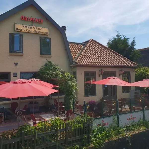 Hof van Schoorl位于Schoorldam,配有花园、露台、餐厅和酒吧。酒店拥有家庭间。 这家酒店的客房均配有平板电视。Hof van Schoorl的客房配有带淋浴设施和免费洗浴用品的私人浴室,也提供免费WiFi。 这家住宿供应欧陆式早餐。 史基浦机场距离住宿有44公里。