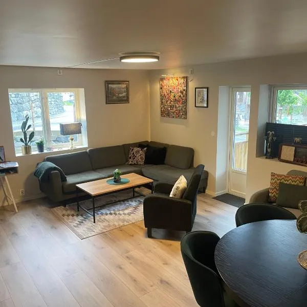 Gjestehus i Sogndal med utsikt over fjord og fjell坐落于松达尔,距离Kaupanger Stave Church仅有8.9公里,享有山景,配备免费WiFi和免费私人停车位。这家公寓提供带庭院的客房。 这家公寓配有1间卧室、1间浴室、床上用品、毛巾、平板电视、设施齐全的厨房以及海景露台。1间浴室提供淋浴设施和吹风机。 桑恩达机场距离住宿有15公里。