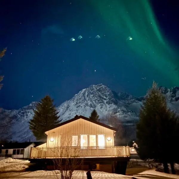 Solstad坐落于塞尼亚岛的Senja,配有阳台,享有山景。这家自助式度假屋拥有花园和免费私人停车位。 这家度假屋提供3间卧室、2间浴室、床上用品、毛巾、平板电视、用餐区、设施齐全的厨房以及海景露台。2间浴室配有淋浴设施和洗衣机,也配备免费洗浴用品和吹风机。 朗奈斯机场距离住宿有94公里。