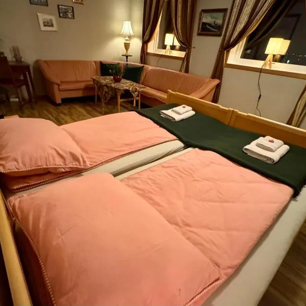 Polarhagen位于Vestvågøya,享有花园景,配有免费WiFi和免费私人停车位。 所有房间均配有山景露台、带冰箱和微波炉的厨房以及带淋浴设施的共用浴室。住宿还提供炉灶和电热水壶。 早餐提供单点、欧陆式或意式三种选择。 客人还可以在花园内或共用休息室放松身心。 住宿距离莱克内斯机场有11公里,提供付费机场接驳服务。