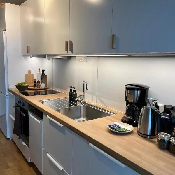 Modern apartment near train station H77A位于纳尔维克,距离Narvik Museum有13分钟步行路程,距离巴兰根博物馆有43公里,提供免费WiFi。 这家公寓配有1间卧室、带冰箱和洗碗机的厨房以及1间带淋浴设施、免费洗浴用品和洗衣机的浴室。这家公寓还提供电视以及1间带吹风机的浴室。 哈尔斯塔纳尔维克机场距离住宿有57公里。