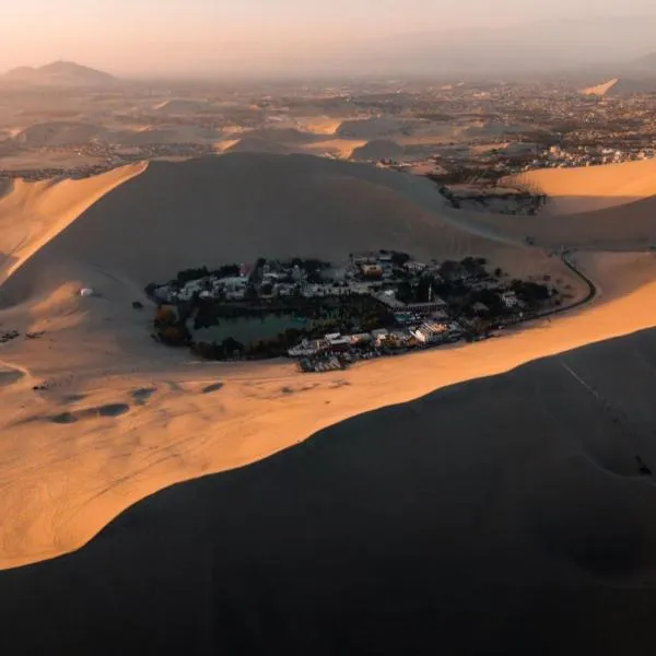 Ahoj cestovateli! Huacachina je místo plné zkušeností. Neuvěřitelné duny vás přivítají tím, že se obklopíte, jakmile přijedete a vyjdete na naši barevnou recepci a to je vše, co jste právě dorazili.