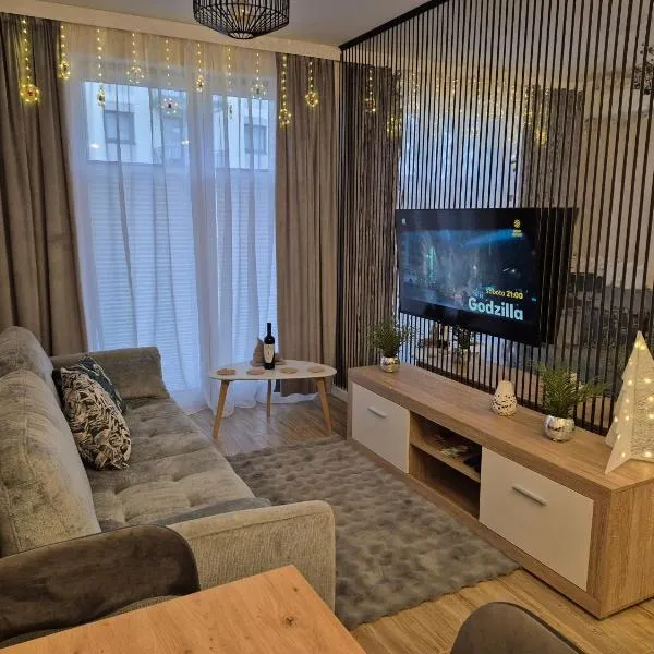 Apartament Baltic Garden&Sztutowo位于斯图托沃,配备私人泳池和免费WiFi。这家住宿距离斯图托沃海滩(Sztutowo Beach)有2.6公里,提供私家海滩和免费私人停车位。 这家公寓配有2间卧室、起居室、带冰箱和咖啡机的设施齐全的小厨房以及1间带淋浴设施和吹风机的浴室。这家公寓也提供休息区和1间浴室。 客人可以使用这家公寓的室内泳池。