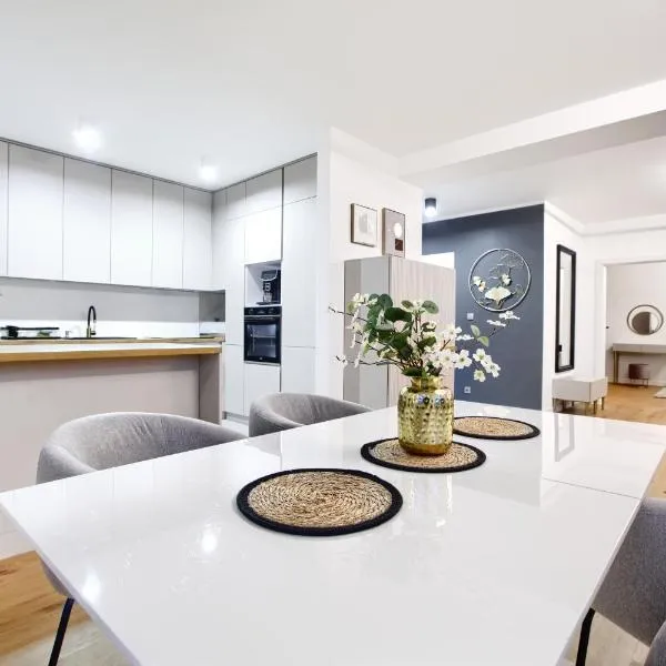 Apartamenty Turkus坐落于Mścice,享有市景,拥有免费WiFi和免费私人停车位,距离市政厅有38公里。 每间房间都配有阳台、带冰箱的设施齐全的厨房、带沙发床休息区、平板电视、洗衣机以及带淋浴设施的私人浴室。住宿还配备洗碗机、烤箱和炉灶以及咖啡机和电热水壶。 这家公寓配备露台。 Apartamenty...