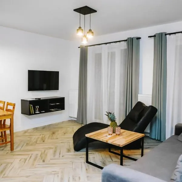 Apartament Centrum Mazury - Szczytno位于什奇特诺,享有市景,提供免费WiFi。这家公寓坐落于一栋建造于2020年的建筑内,距离Olsztyn Stadium有47公里,距离奥尔什丁公交站有48公里。 这家空调公寓配有1间卧室、起居室、带冰箱和咖啡机的设施齐全的小厨房以及1间带浴缸和免费洗浴用品的浴室。这家公寓还提供平板电视以及1间带吹风机的浴室。...