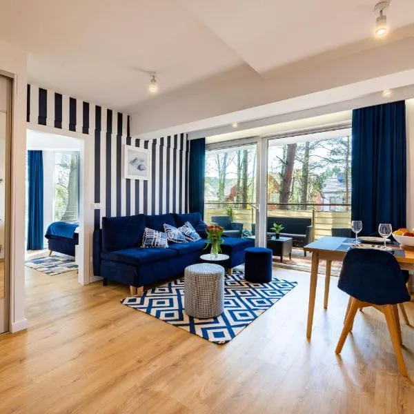 Em Debina, na região de Pomorskie, Blue Apartment B, Dębina oferece varanda. A acomodação fornece bicicletas grátis e estacionamento privativo grátis. Debina Beach fica a menos de 1 km de distância.