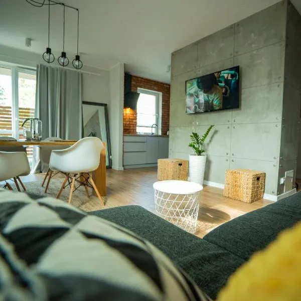 Czerwona Perła Mazur位于奥斯特罗达,距离奥尔什丁公交站有42公里,距离Olsztyn Stadium有43公里,提供阳台和免费WiFi。这家公寓距离Arboretum in Kudypy有33公里,距离马祖高尔夫乡村俱乐部有38公里。 这家1卧室公寓配备起居室、平板电视、带冰箱和洗碗机的设施齐全的厨房以及1间带吹风机的浴室。这家公寓也为客人提供1间带浴缸和洗衣机的浴室。