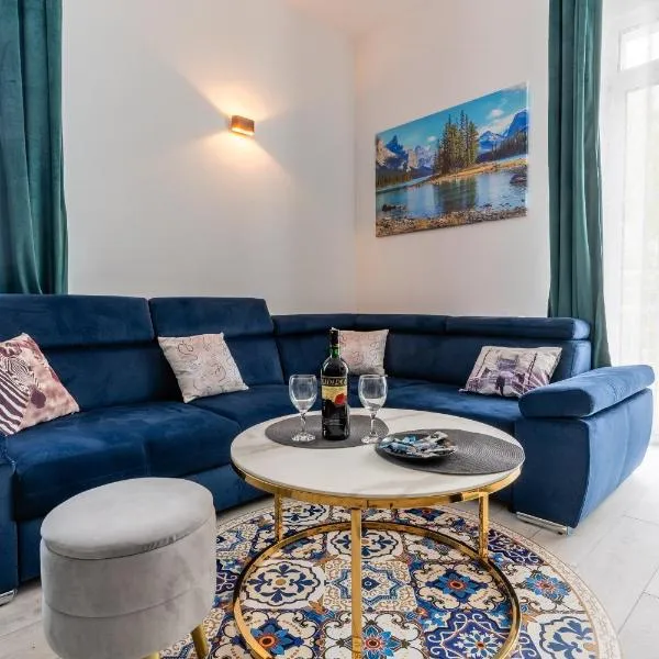Comfort Zone Ostroda BOHO SCANDI坐落于奥斯特罗达,享有花园景,距离奥尔什丁公交站有42公里,距离Olsztyn Stadium有44公里。这家住宿的客人可以使用阳台、免费私人停车位和免费WiFi。 这家公寓享有市景,配备露台,配有2间卧室、起居室、卫星频道平板电视、设施齐全的厨房以及1间带淋浴设施和浴缸的浴室。1间浴室提供吹风机。