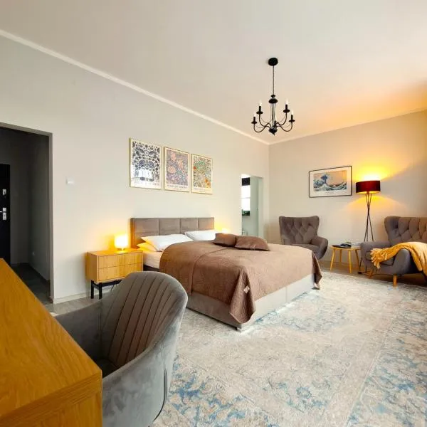 Apartament Piastowska坐落于奥斯特罗达,距离奥尔什丁公交站有41公里,距离Olsztyn Stadium有43公里,配备阳台和免费WiFi。这家公寓距离Arboretum in Kudypy有33公里,距离马祖高尔夫乡村俱乐部有37公里。 这家2卧室公寓配有带平板电视的起居室、设施齐全的厨房和1间浴室。这家公寓也拥有1间浴室。