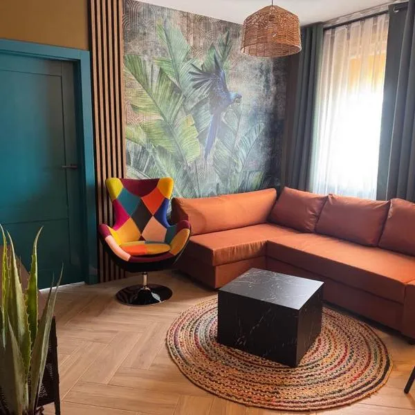 Apartament Ami坐落于普沃茨克,距离a.r.t. Gallery仅有3.1公里,享有市景,配备免费WiFi和免费私人停车位。入住这家公寓的客人可以使用阳台。 这家空调公寓配有1间卧室、起居室、带冰箱和咖啡机的设施齐全的厨房以及1间带淋浴设施和免费洗浴用品的浴室。这家公寓还提供休息区、洗衣机以及1间带吹风机的浴室。 华沙莫德林机场距离住宿有70公里。