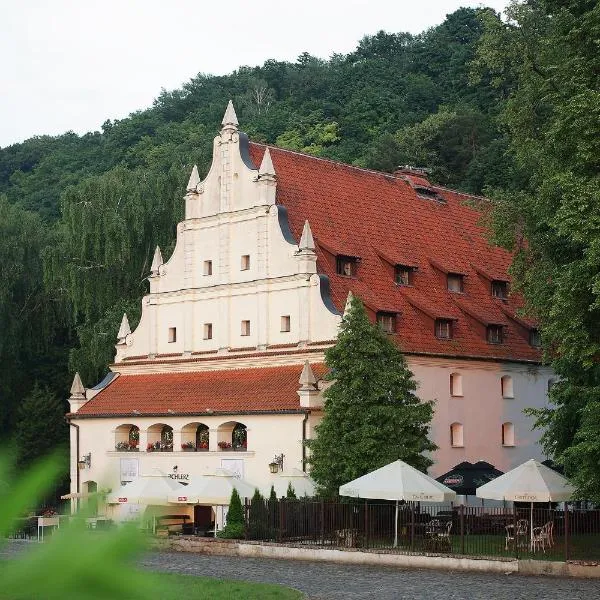 Hotel Kazimierski Zdrój坐落于亚诺维茨,距离Taras Widokowy有7分钟步行路程,配备花园、免费私人停车位、露台和餐厅。这家舒适型酒店配备酒吧,提供带免费WiFi的空调客房。住宿为客人提供客房服务和24小时前台。 这家酒店的每间客房都提供书桌。客房配备保险箱。部分客房还配有阳台,其他客房也享有河景。