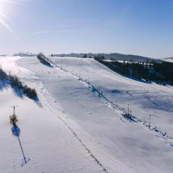 Ofreciendo vista a la montaña, Apartamenty w Górach Sowich en Pieszyce ofrece hospedaje, una alberca al aire libre por temporada, un jardín, un restaurante, un bar y una cancha de tenis.