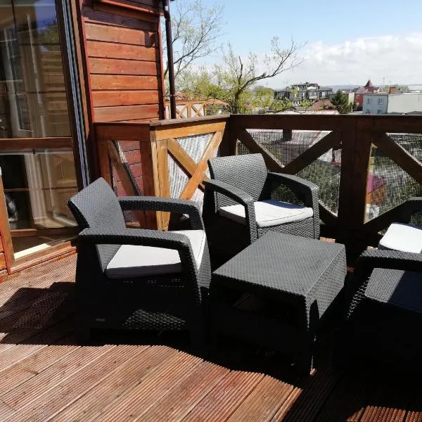 Apartamenty Słoneczne Rowy - 200 m od morza, z parkingiem 提供附陽台的住宿,距離羅維海灘(Rowy Beach) 500 公尺。館內提供私人停車位。
