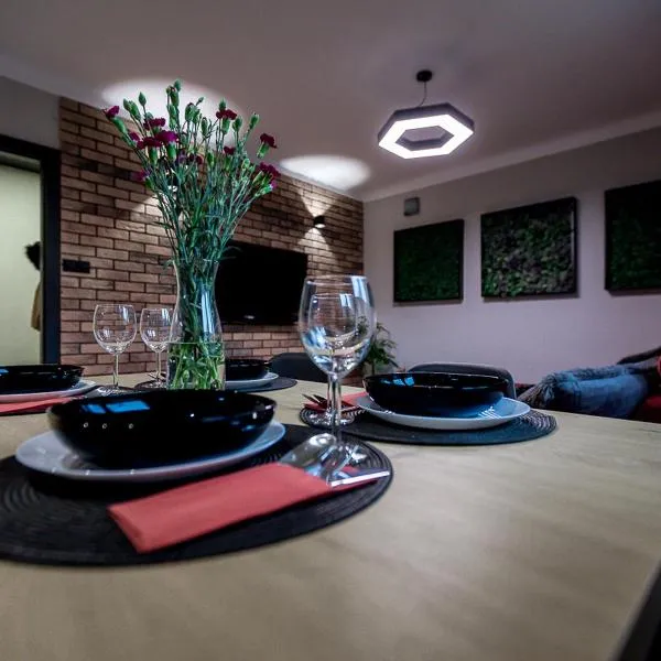 Sanriver Apartamenty位于萨诺克,配备带免费WiFi的山景客房,配备花园、露台和烧烤设施。这家公寓配有免费私人停车位。客人可以在周边地区体验徒步、滑雪和垂钓等活动。 这家1卧室公寓提供起居室、平板电视、带冰箱和洗碗机的设施齐全的厨房以及1间带淋浴设施的浴室。这家公寓也配有休息区和1间浴室。 这家公寓提供自行车租赁服务。客人可以在附近体验骑行。