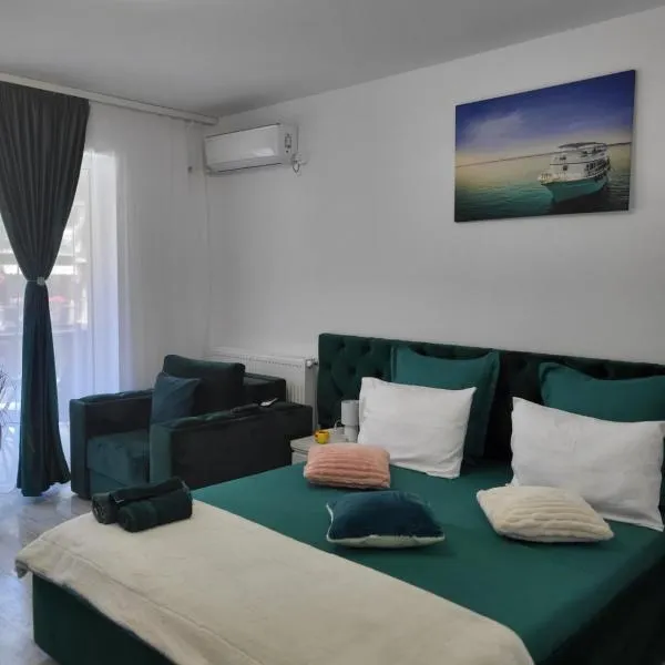 Anastasia坐落于康斯坦察县的曼加利亚,拥有阳台。这家公寓享有市景和海景,也提供免费WiFi。 这家空调公寓配有1间卧室、起居室、带冰箱和咖啡机的设施齐全的厨房以及1间带淋浴设施和免费洗浴用品的浴室。1间浴室配有浴缸,也配备吹风机,提供毛巾和床上用品。 这家公寓距离曼加利亚海滩(Mangalia Beach)有15分钟步行路程,距离奥维迪广场有46公里。