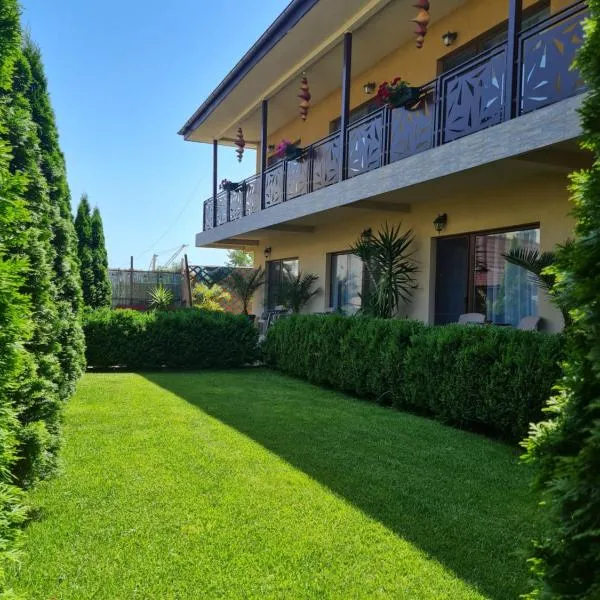 Casa Sunrise Mangalia位于曼加利亚,提供花园以及免费WiFi,还为驱车前来的客人提供免费私人停车位,距离曼加利亚海滩(Mangalia Beach)有不到2.2公里,距离奥维迪广场有46公里。这家住宿距离城市公园购物中心约有49公里,距离滨海阿波马尼亚公园有6.3公里,距离Paradis Land Neptun游乐园有8.2公里。