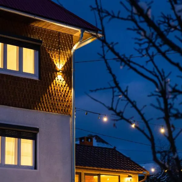 Apuseni Air - Soare享有山景,配备露台,距离Scarisoara洞约有17公里。这家自助式度假屋配有花园、烧烤设施、免费WiFi和免费私人停车位。 这家空调度假屋配有1间卧室、起居室、带冰箱和咖啡机的设施齐全的厨房以及1间带淋浴设施和免费洗浴用品的浴室。这家度假屋还提供平板电视以及1间带吹风机的浴室。 克鲁日国际机场距离住宿有96公里。