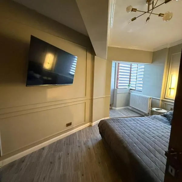 Petrosani Central ApartHotel位于彼得罗沙尼。这家公寓享有市景和山景,也提供免费WiFi。 这家公寓配有1间卧室、起居室、带冰箱和咖啡机的设施齐全的厨房以及1间带浴缸和吹风机的浴室。这家公寓还提供平板电视以及1间带拖鞋的浴室。 克拉约瓦国际机场距离住宿有168公里。