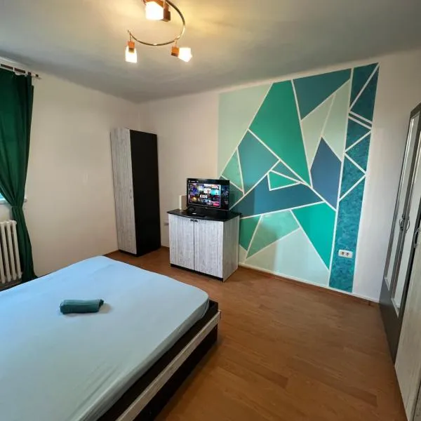 Turquoise apartment位于彼得罗沙尼,提供带阳台和免费WiFi的自助式住宿。 这家公寓配有2间独立卧室、起居室、带冰箱和洗碗机的设施齐全的厨房以及1间浴室。这家公寓也提供1间浴室。 克拉约瓦国际机场距离住宿有166公里。